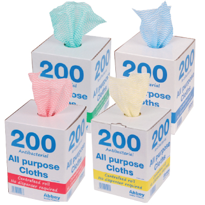 Keep your cloths clean and tidy with this easy to use portable box dispenser. 200 perforated tear-off sheets of all-purpose cloths on a roll for quick and easy access.